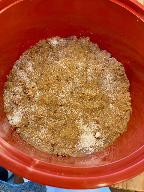 豆麹に塩を加えながら潰して混ぜこみ